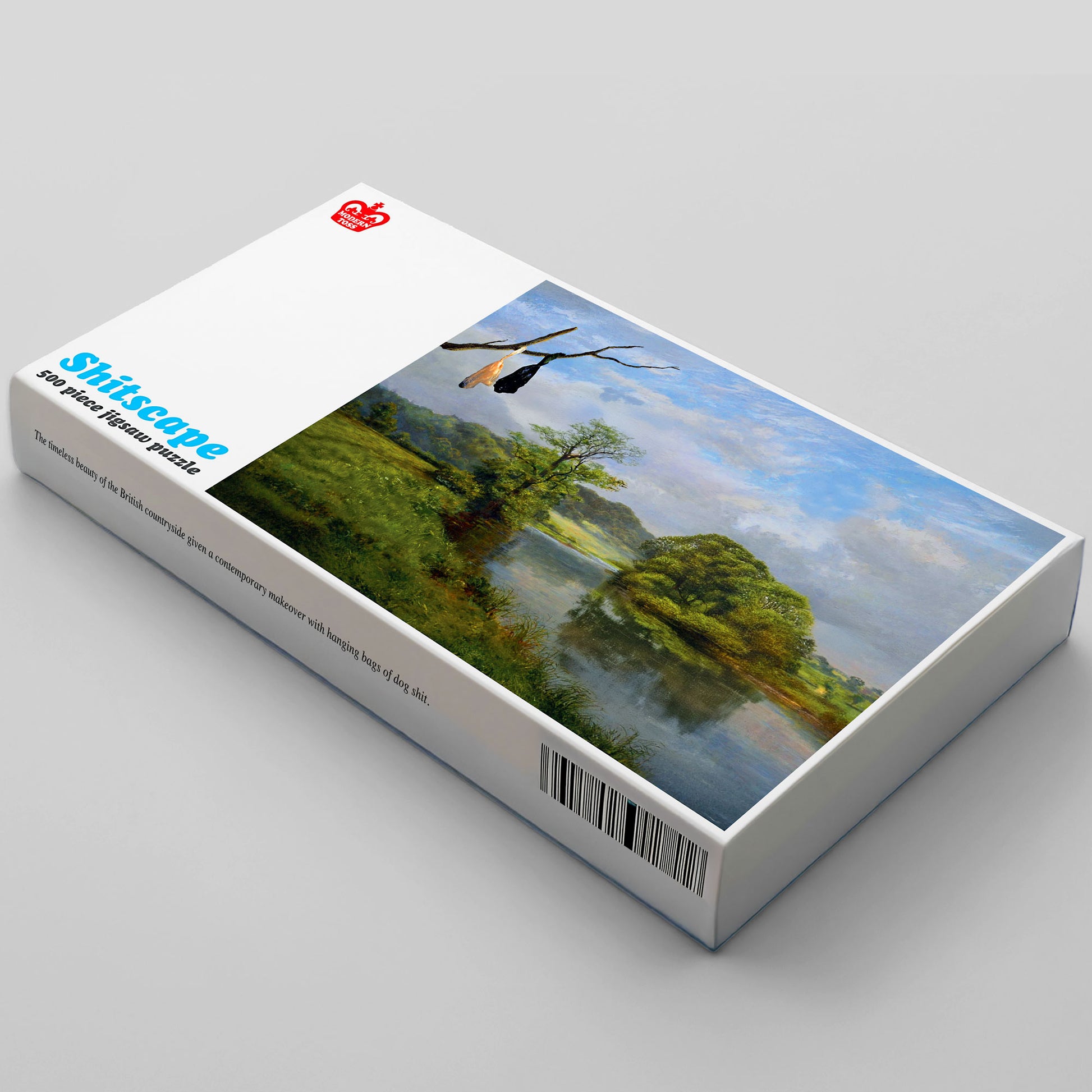 Looking for a new hobby? Try out our brand new Shitscape jigsaw puzzle. Piece together the timeless beauty of the British countryside with hanging bags of dog shit. Made up of 500 pieces, the jigsaw is 38cm x 50cm when complete